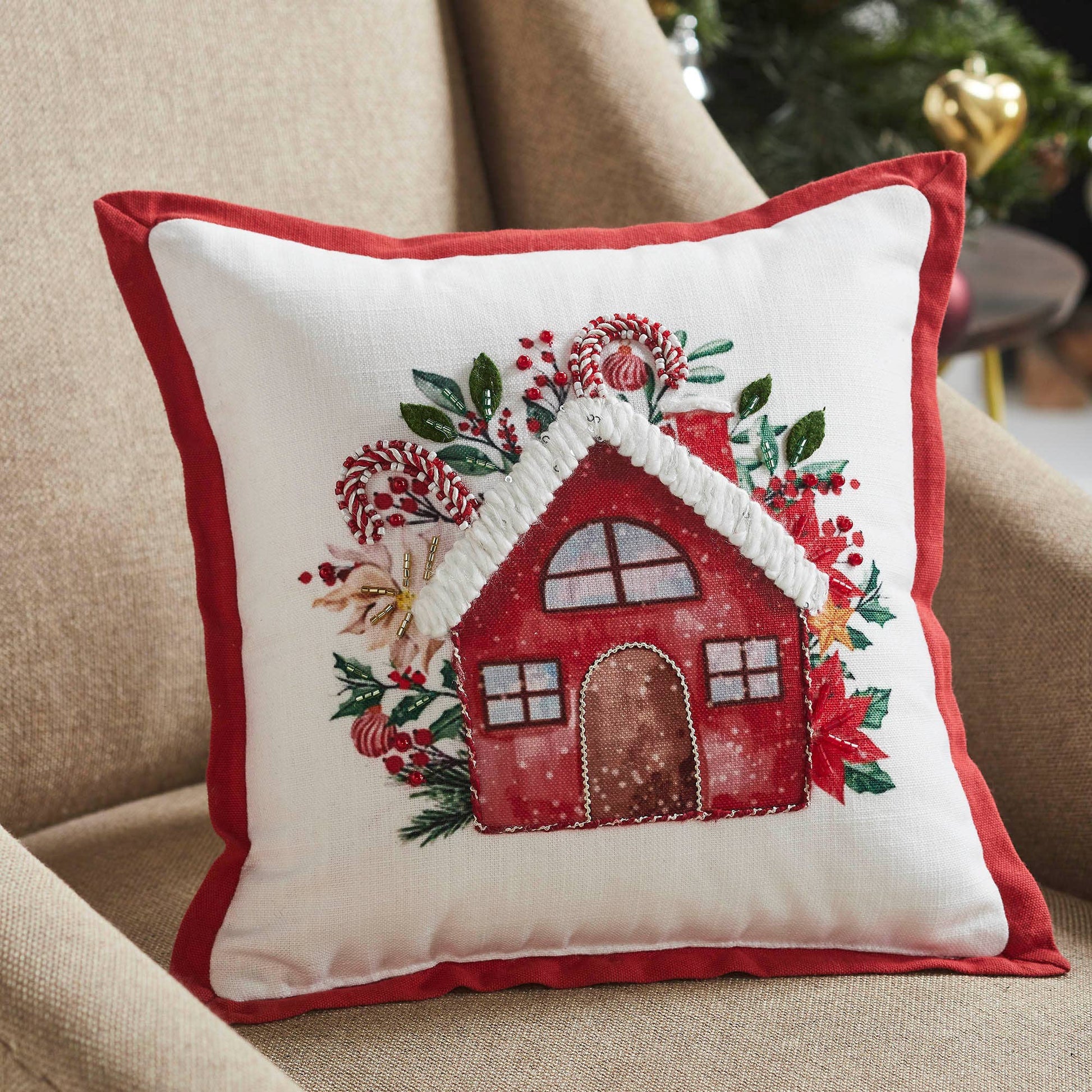 Introducing the VHC Brands Candy Cane Cottage Pillow, a delightful addition to your winter and holiday decor. Crafted from polyester, this decorative throw pillow offers both durability and a soft, plush texture, perfect for adding a touch of festive charm to your home. Measuring 12x12 inches, its square shape provides the ideal size for accenting your bed, entryway bench, or living room sofa with holiday flair. This pillow is spot clean only.