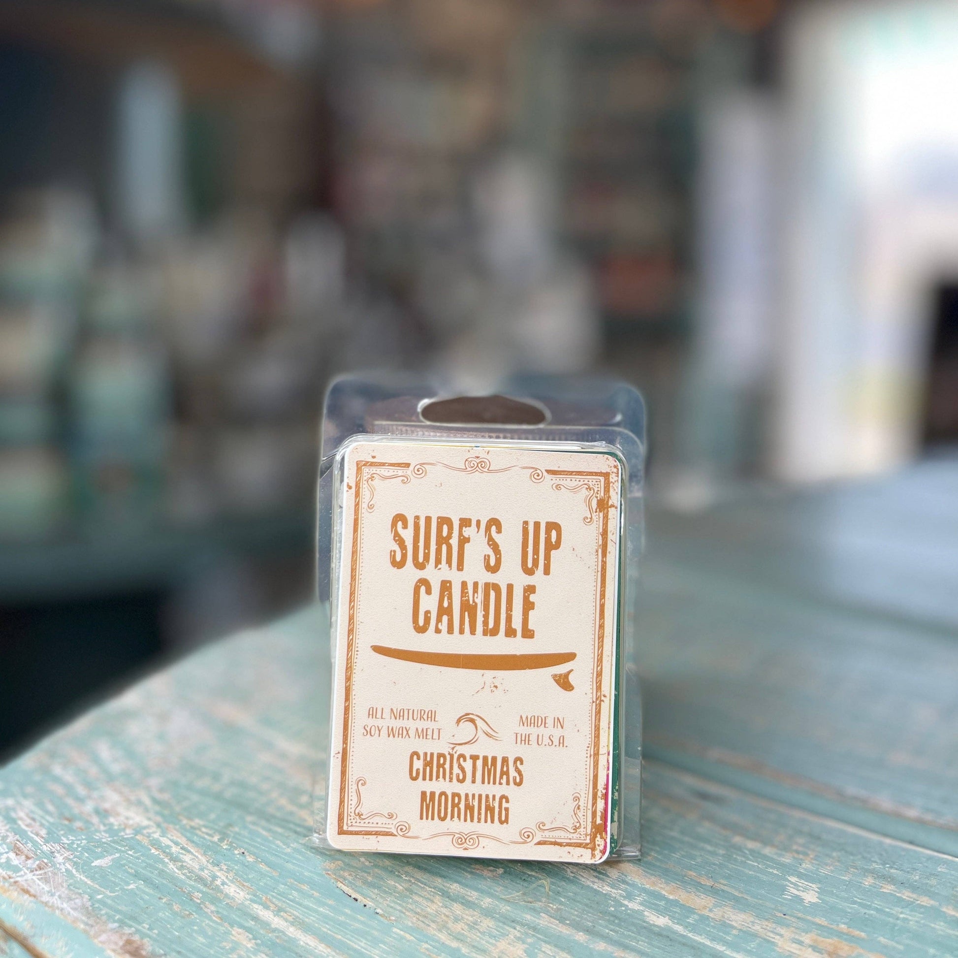 Christmas Morning is the epitome of Christmas spirit! This is our take on the best of Christmas morning blending together the leftover scent of cookies and milk while adding in some magical elements of our own. Christmas morning contains hints of nutmeg, cinnamon, brown sugar, molasses, vanilla cream. and ginger that will thrust you right back into the Christmas spirit! Surf's Up candles are all natural soy wax, no dyes, paraffin, lead, or petroleum content. Comes with 6 cubes of wax