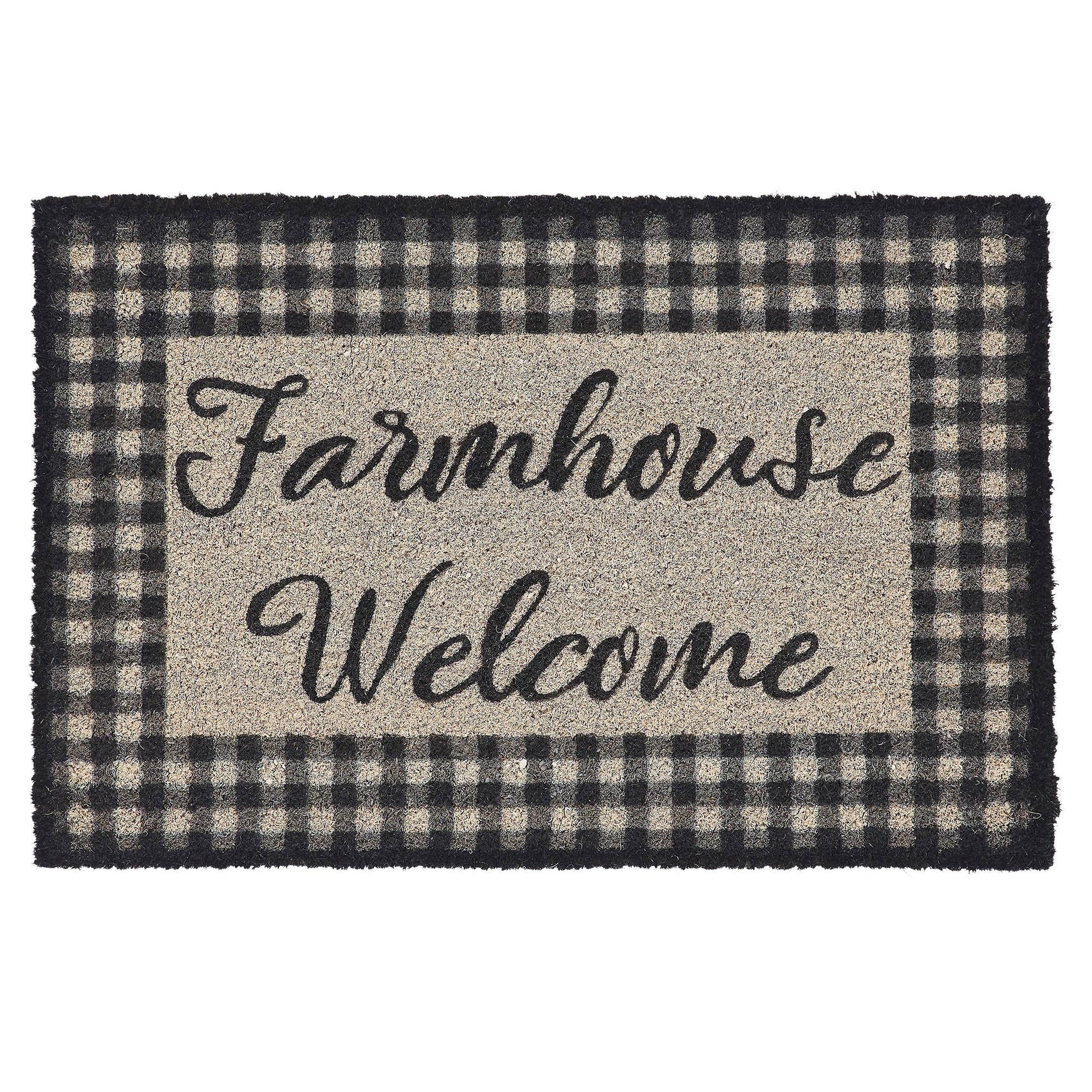 Elevate your home's entrance with the VHC Brands Coir Welcome Door Mat from the Finders Keepers Collection, a delightful addition that captures the timeless charm of Farmhouse living. This inviting 20x30-inch doormat extends a warm "Farmhouse Welcome" message, making it the perfect choice for your front porch or entryway. Crafted with a bristled and textured coir surface, it creates a welcoming and textured atmosphere, ideal for the fall season. Designed for both indoor and outdoor use, this coir doormat features PVC backing for enhanced durability and slip resistance, ensuring it withstands the elements year-round. Its slim profile easily fits beneath most doors, and the eco-friendly coir material aligns with modern sustainability values.