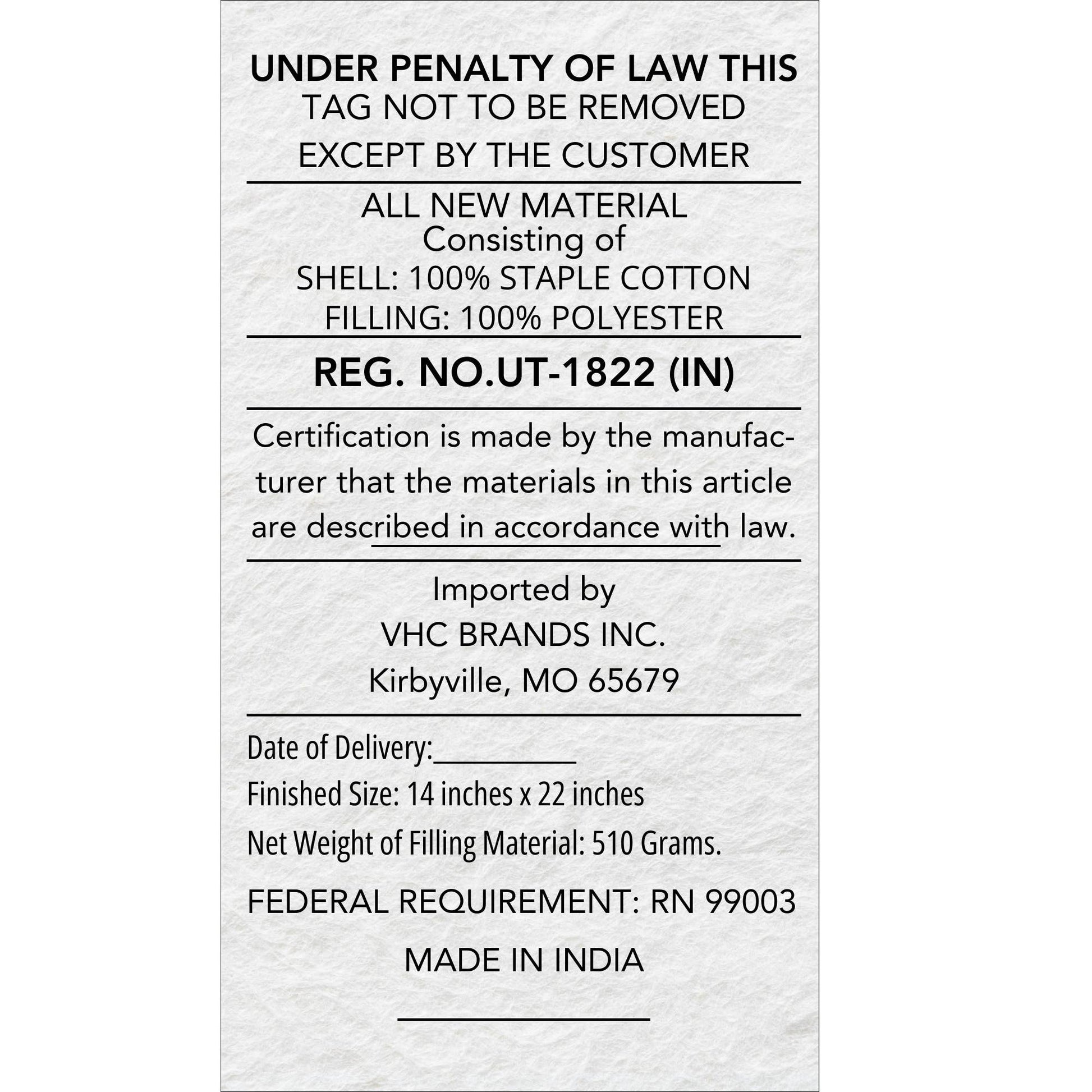 Material: 100% Cotton Shell, Polyester Pillow Fill