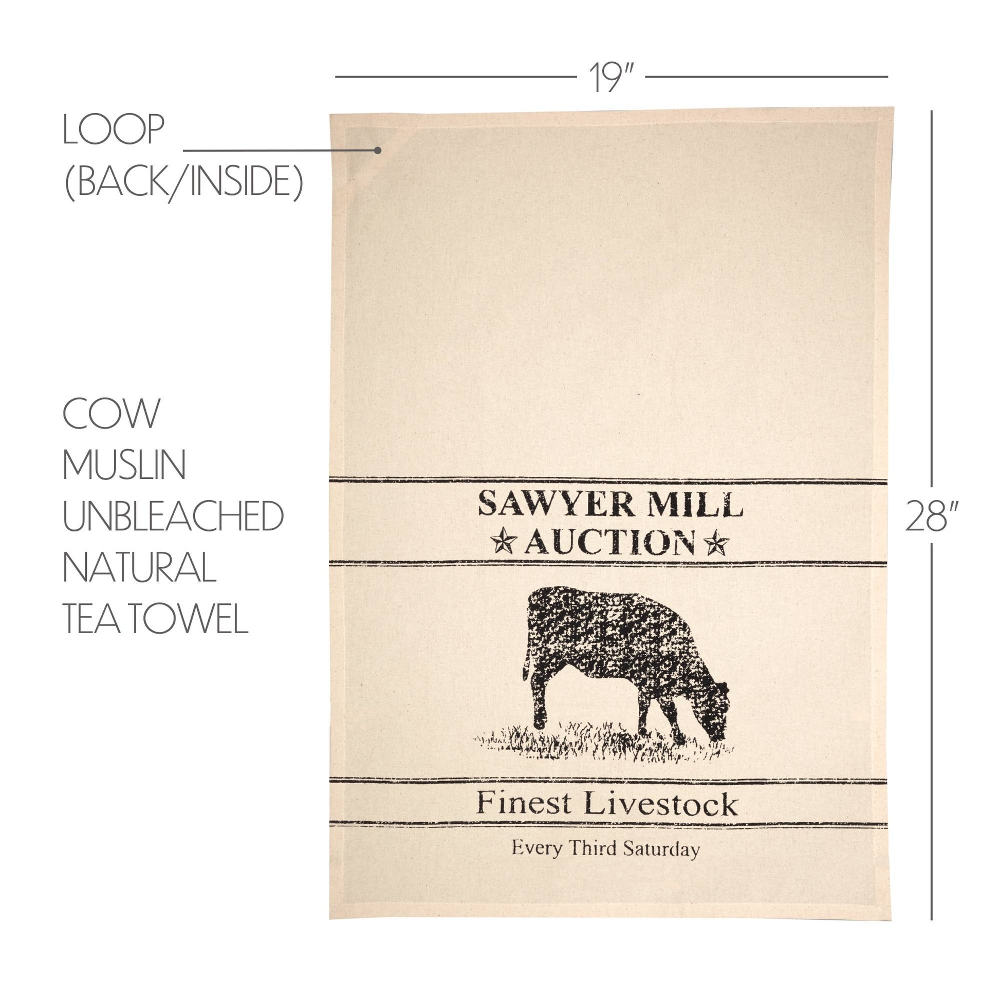 Sawyer Mill Charcoal Cow Muslin Unbleached Natural Tea Towel 19x28