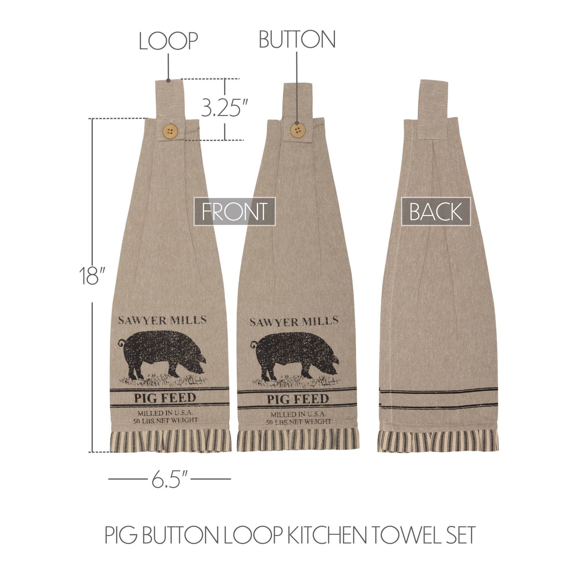 Sawyer Mill Charcoal Pig Button Loop Tea Towel Set of 2